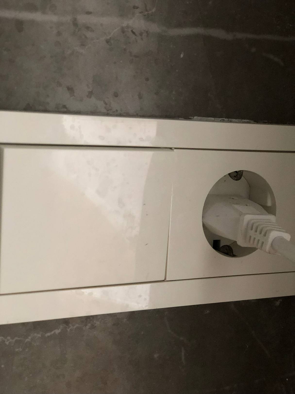 Wände in Bad (Steckdose) nicht geputzt. Kalkflecken vorhanden.