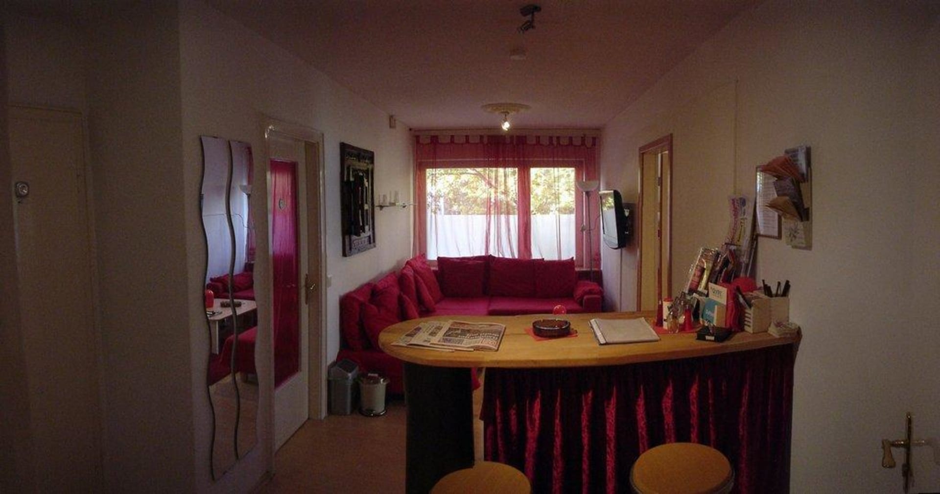 Gemeinschaftsraum für alle, mit einem kleinem Tresen und einer großen gemütlichen Coach.