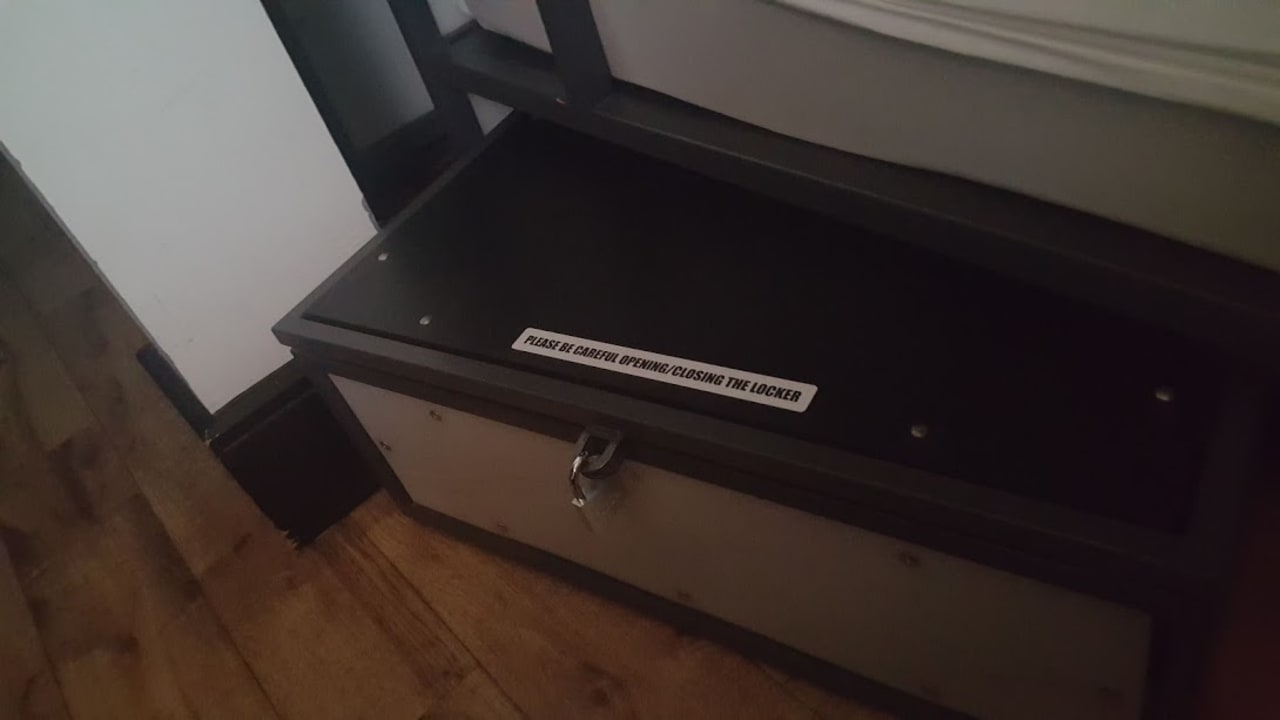 Abschließbare Boxen unter den Betten. (Schloss mitbringen!)