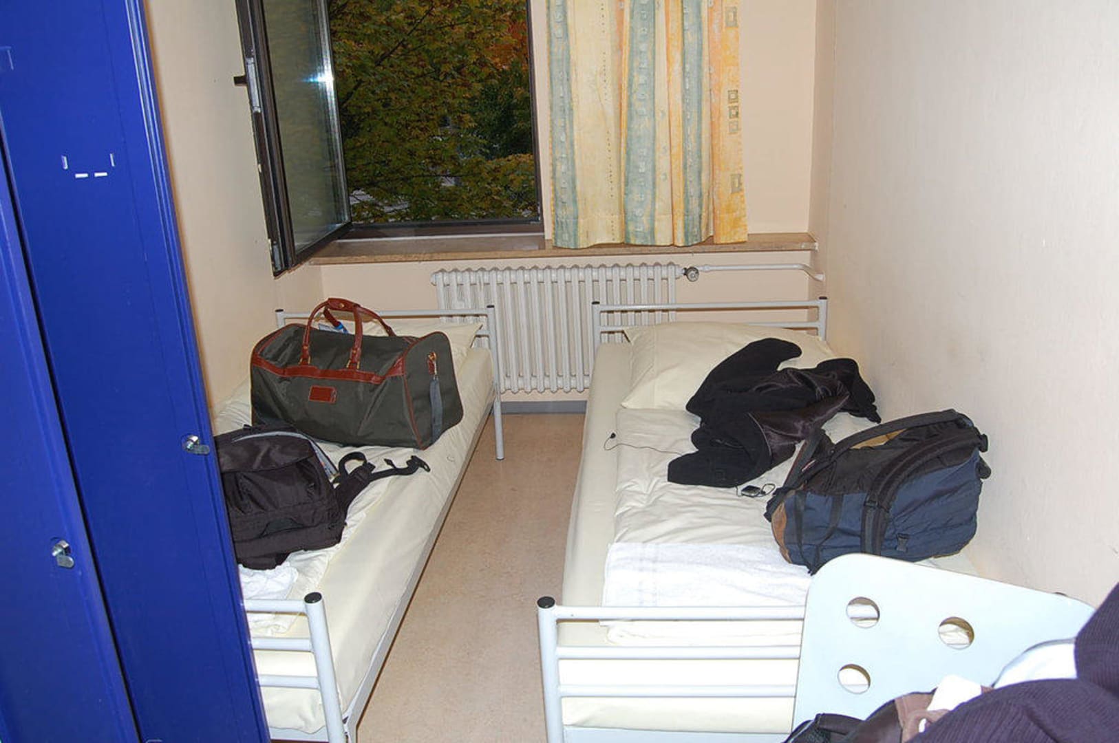 Tjoa, Die Betten, bzw das Zimmer. Wie man sieht ziemlich wenig Platz und Gefängnisatmosphäre.