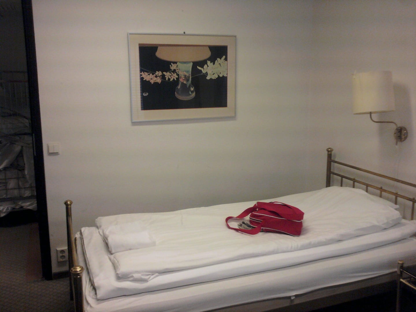 Blick zur Zimmertür mit defekter Lampe