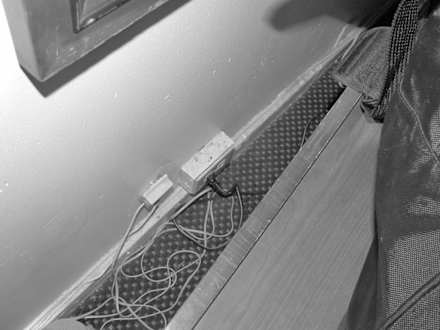 Die einzige Steckdose (hinter dem Schrank)