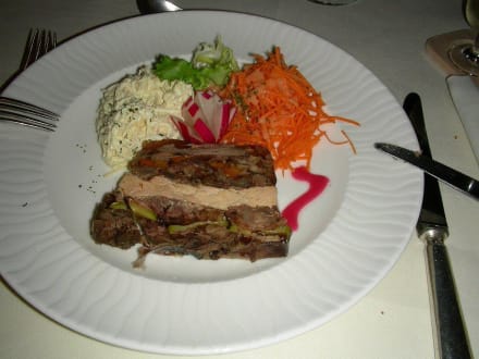 Vorspeise Rindfleischpastete mit Gänseleber und SalatgarnituVorspeise Rindfleischpastete mit Gänseleber u. Salatgarnitur