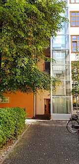 Hoteleingang mit Fahrstuhl