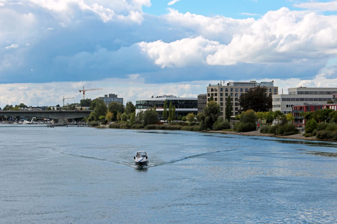 AußenansichtBlick zurück von der in den Stadtkern führenden Brücke zum Hotel (Hotel 47 Grad ist das höchste der Gebäude)