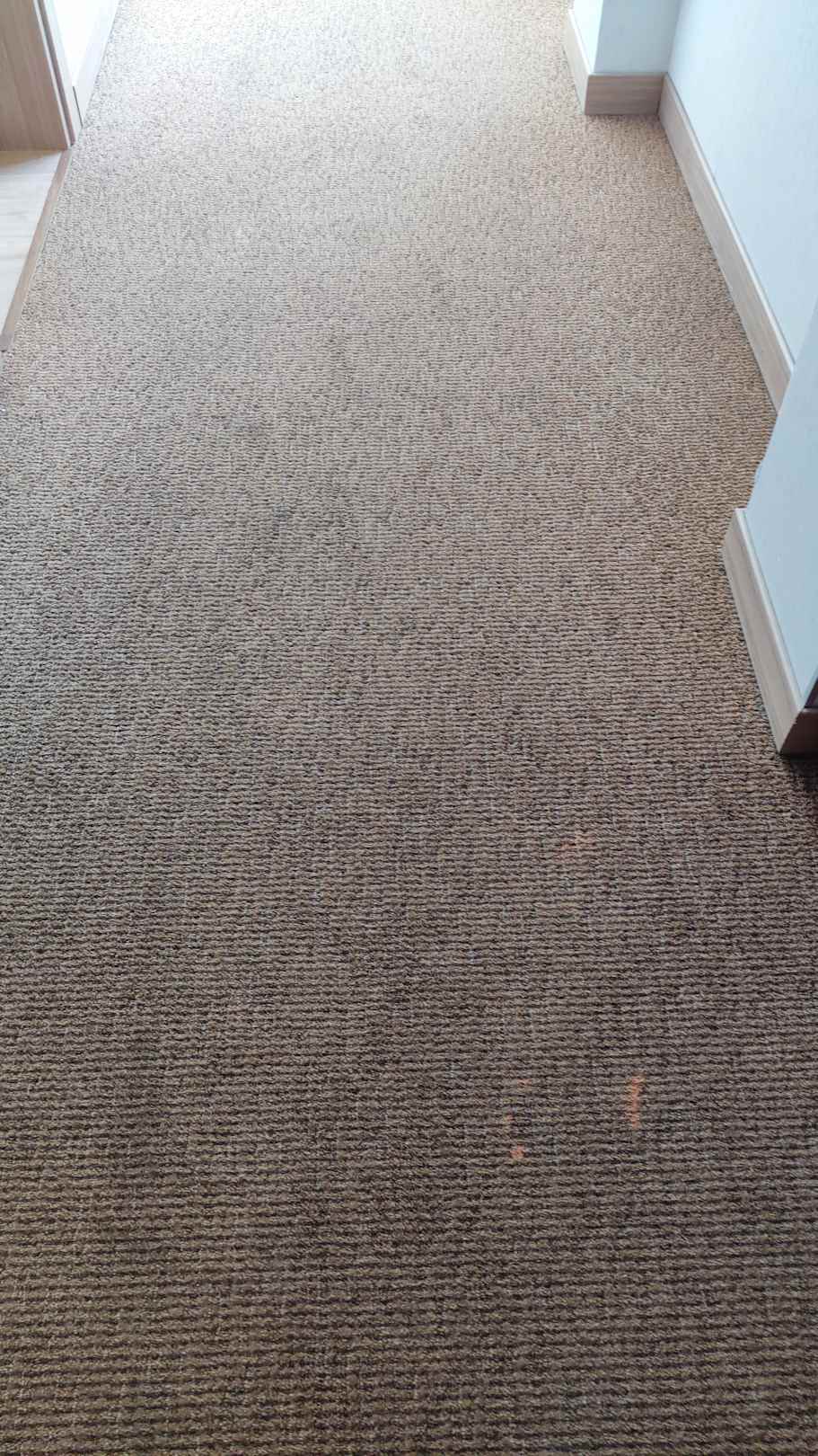 Der Flur mit einem nicht so schönen Teppich.
