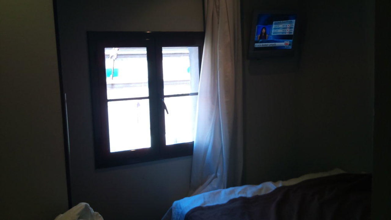 The size of the room and the window can be seen.
