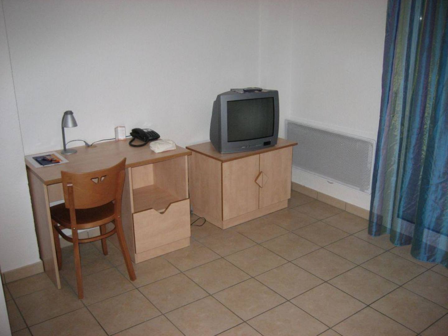 Modestes Schreibpult und Billigstfernseher