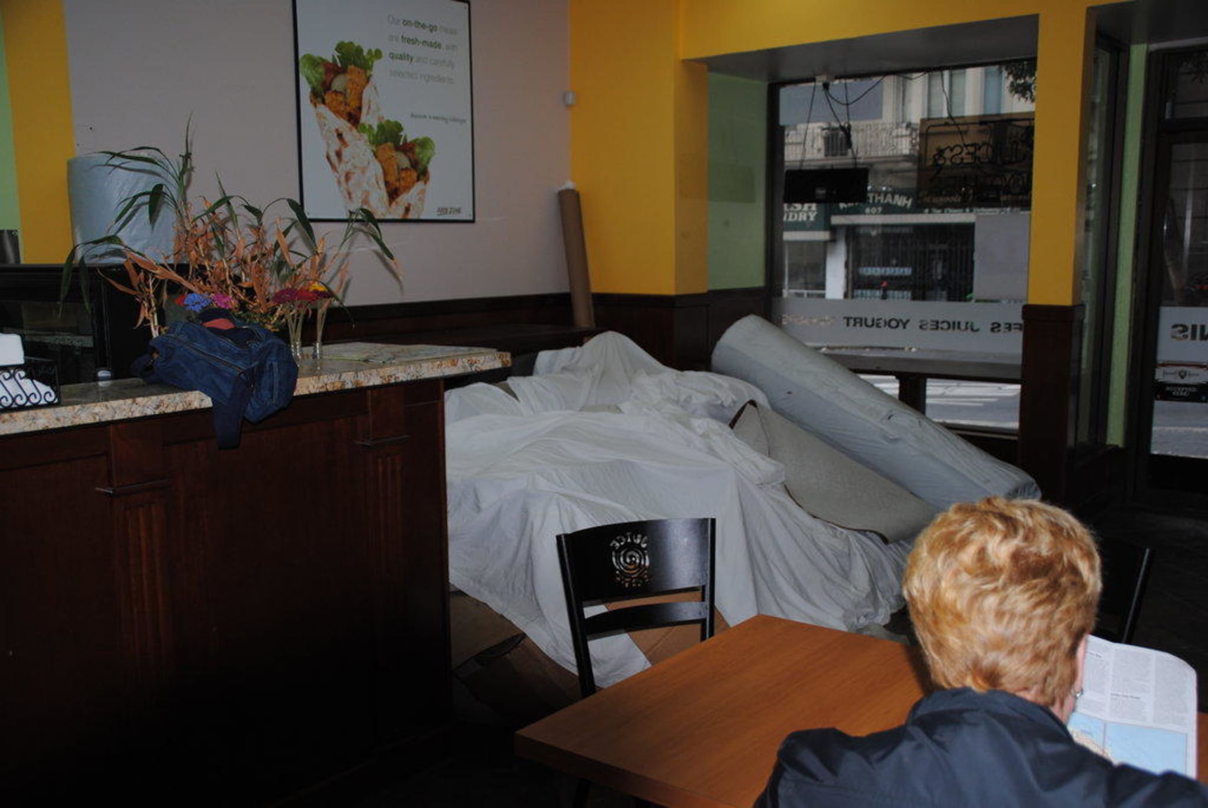 alte tepichreste und anderer unrat wurden mit bettlacken abgedeckt.