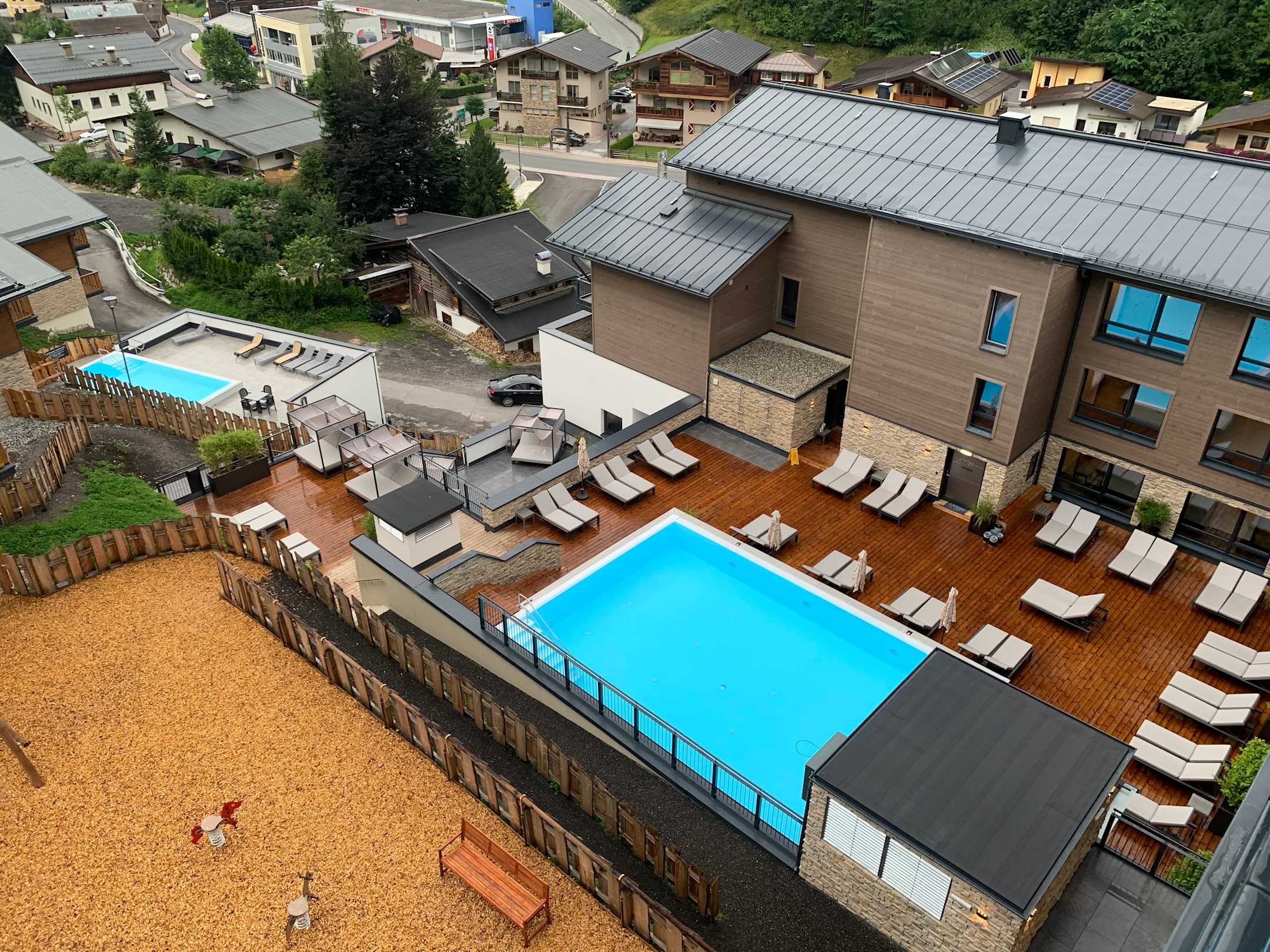 Blick vom Zimmer auf den Aussenpool