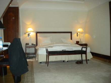 Bett unserer Suite im Hotel Adlon.