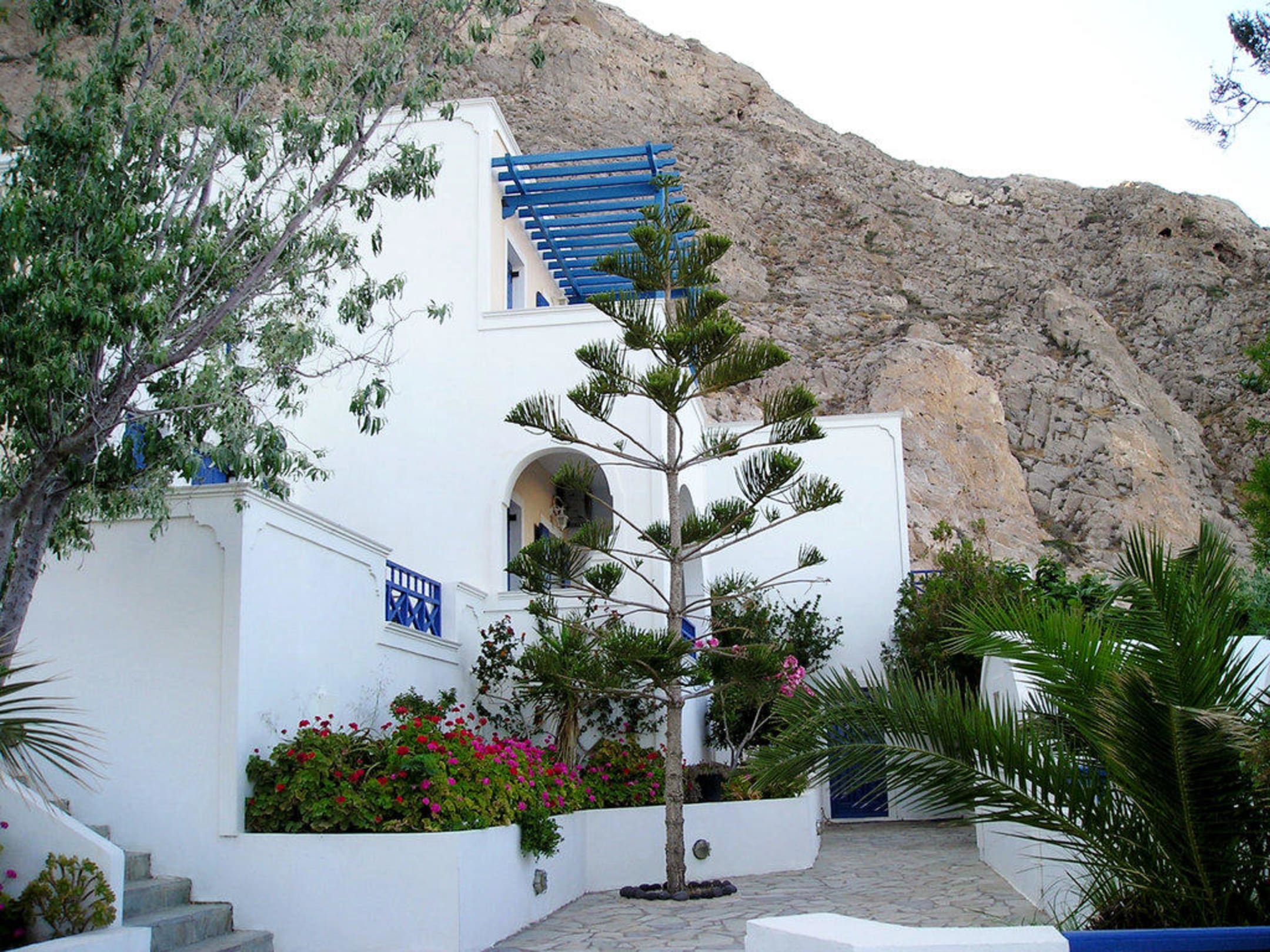Die am direkt am Berg gelegene Hotelanlage wirkt durch die verwinkelten und unterschiedlich hoch gelegenen Gebäudeteile gemütlich