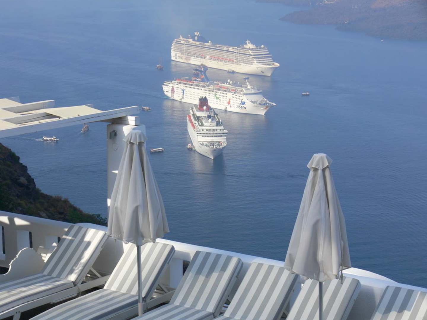 Blick vom Pool auf die Schiffe