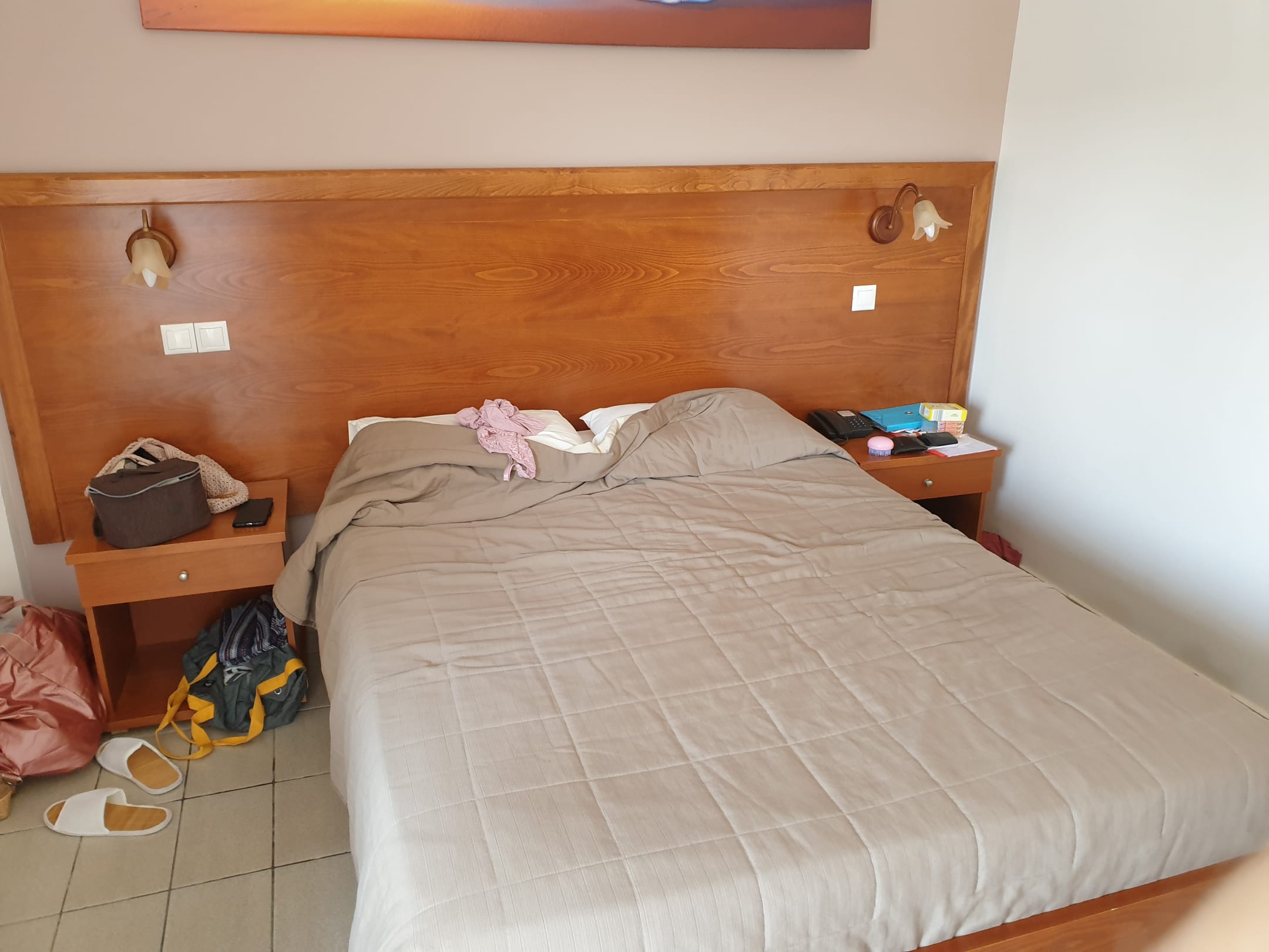Im Doppelzimmer keine Steckdosen am Bett