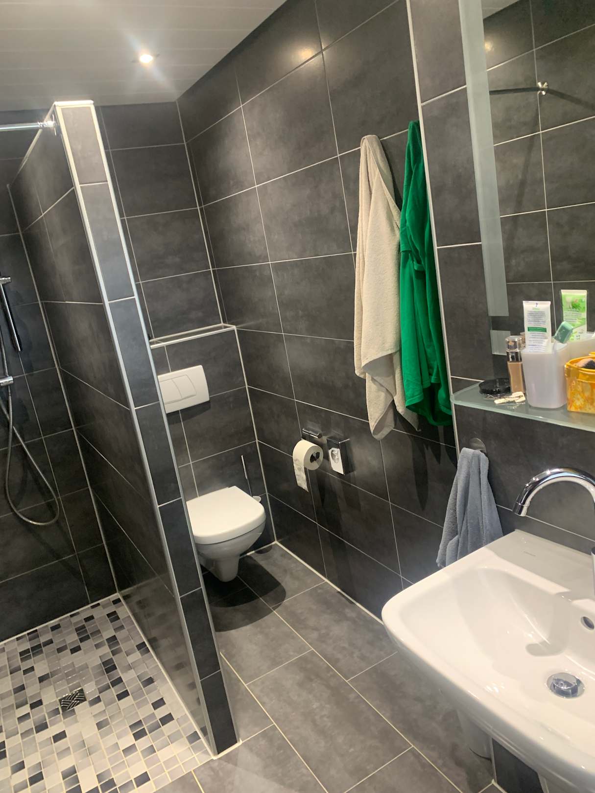 Die Zimmer sind klein, aber zweckmäßig. Die Matratze (Boxspring) ist super bequem und wir haben sehr gut geschlafen. Das Badezimmer ist wunderschön und groß. Einziger Minuspunkt, leider gab es keine Seife um sich die Hände zu waschen.