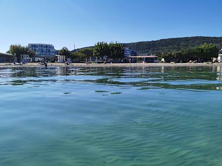 Blick vom Wasser auf das Hotel