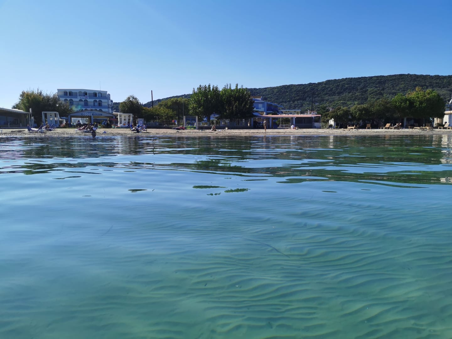 Blick vom Wasser auf das Hotel