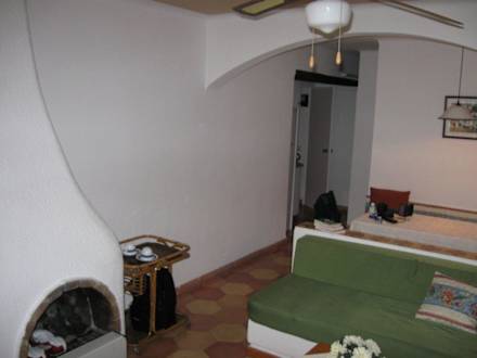 Kamin und Blick auf Küche