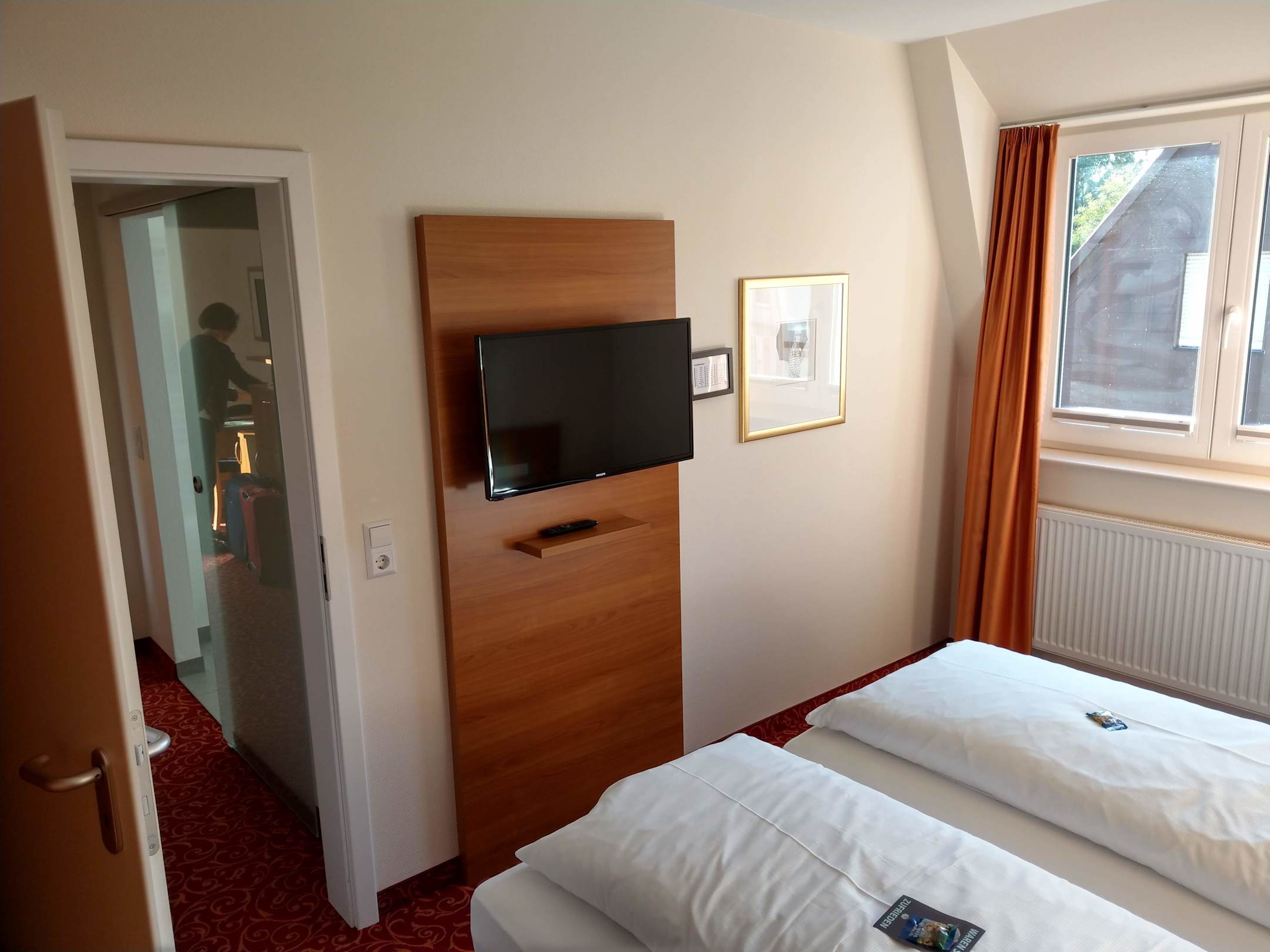Schlafzimmer der Suite Emilie mit zweitem Fernseher
