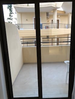 Fenster öffnen nicht möglich, man sieht von einem Zimmer in das Zimmer gegenüber.