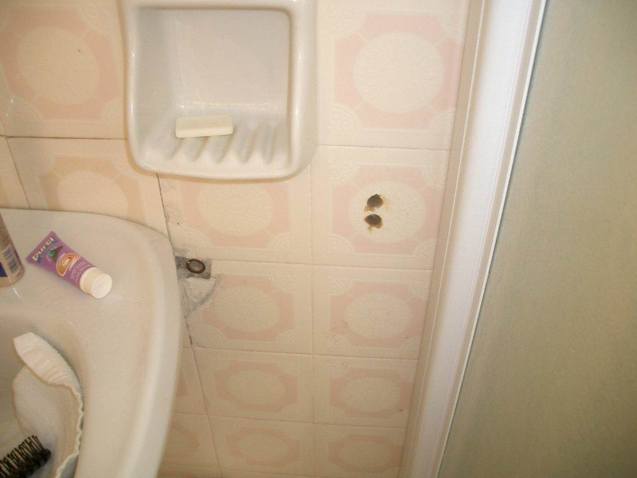 Offene Dübellöcher an mehreren Stellen des Bades