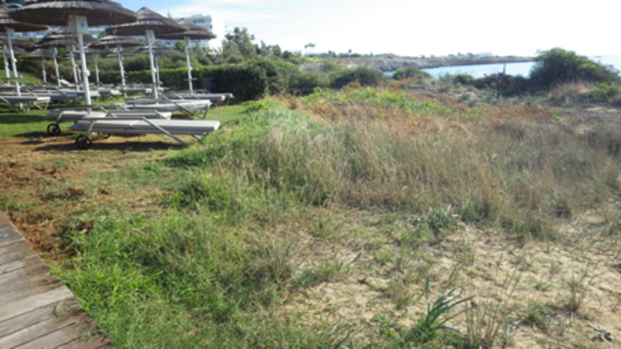 Alion Beach, ungepflegt und verwahrlost, Pflanzen kaputt, im gesamten Urlaub
