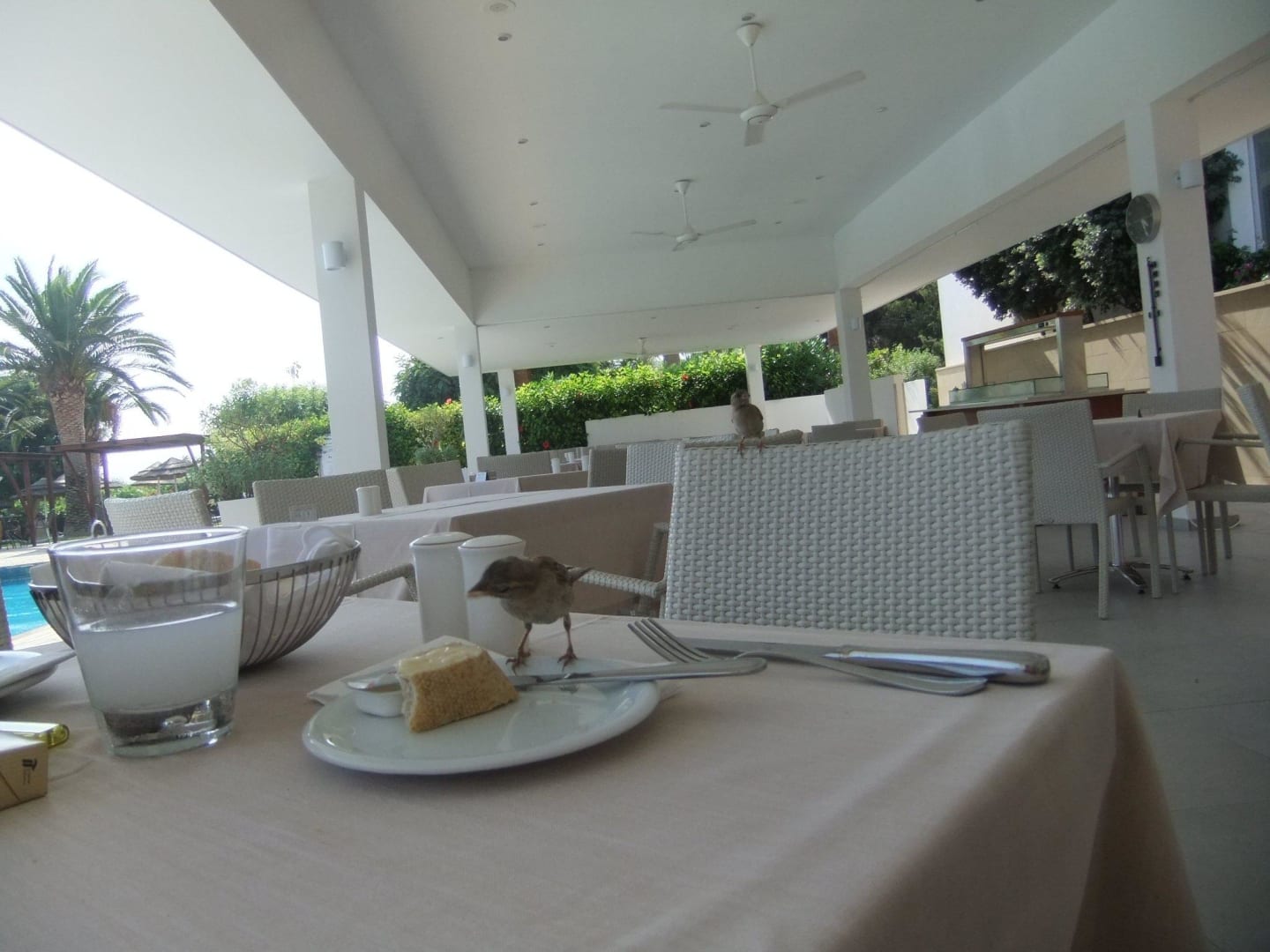 die Spatzen waren sehr zutraulich, fraßen auch aus der Hand