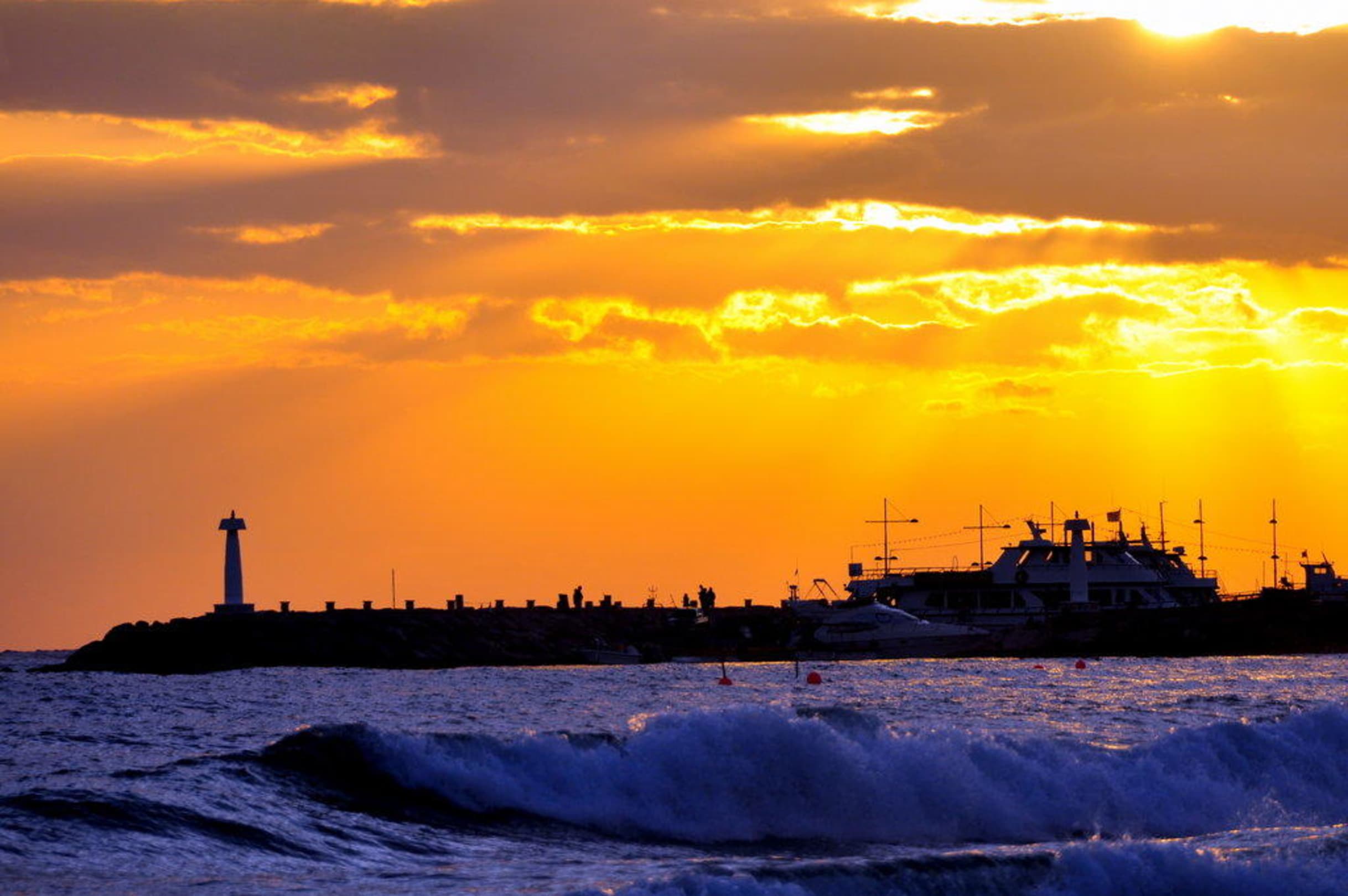 Sonnenuntergang mit Blick zum Hafen