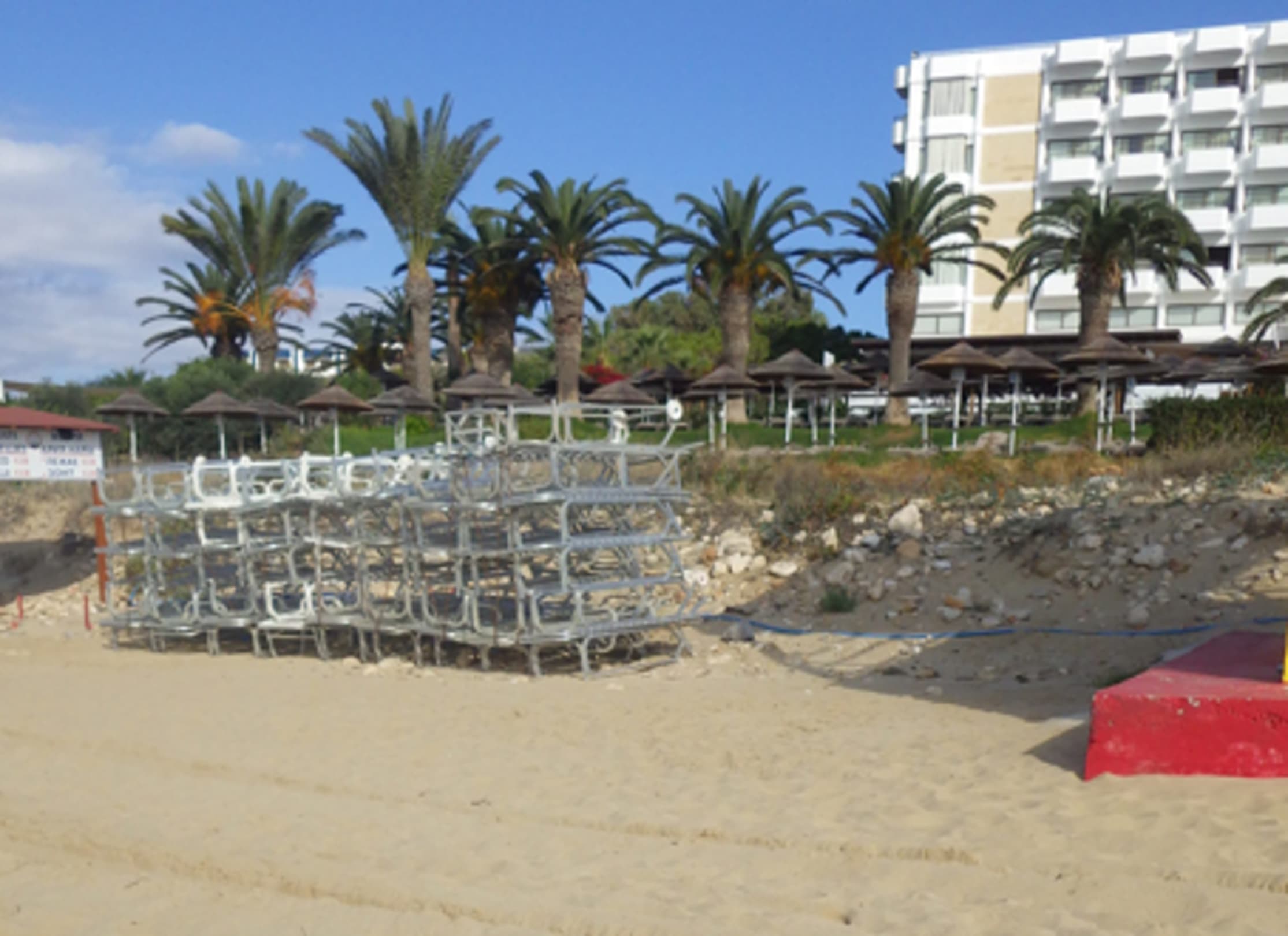 Alion Beach, keine Liegemöglichkeit am Strand, nicht so wie es auf der doteleigenen Webseite dargestellt wird, ungepflegt und verwahrlost im gesamten Urlaub