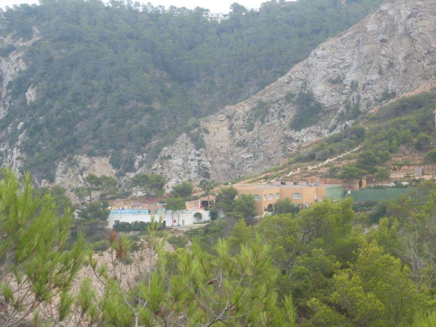 Blick aus der Ferne auf den unteren Teil der Anlage (Pool und Restaurant)