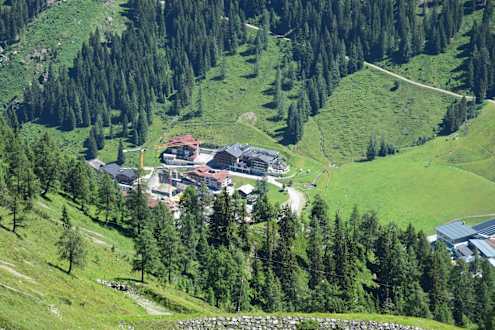 Blick von der Arche auf Zauchensee und das Hotel