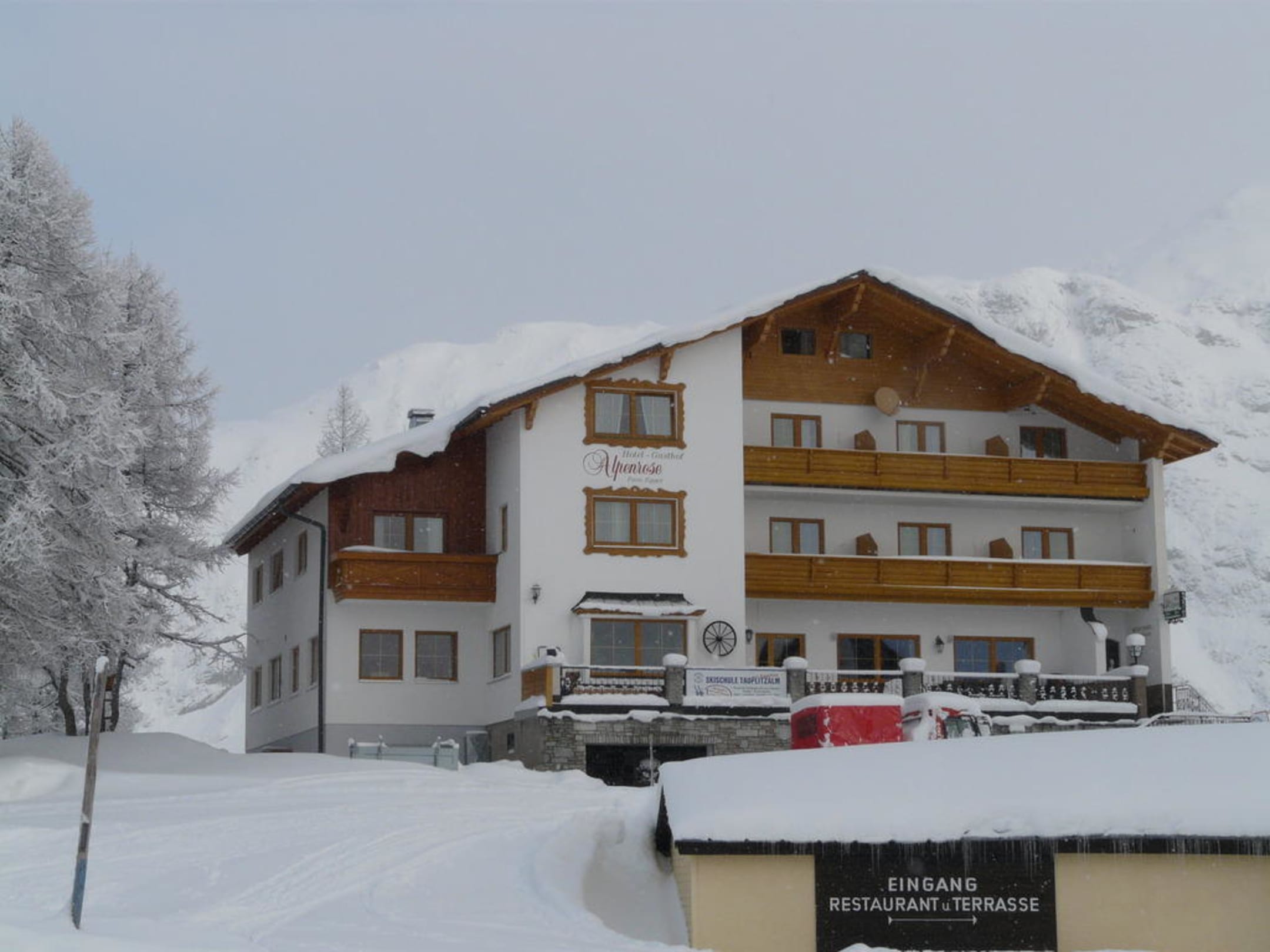 Almhaus mit KomfortDie Südseite des Hauses und die Zimmer mit den Balkonen, der Blick schweift über die umliegenden Berge bis hin zum Dachstein.