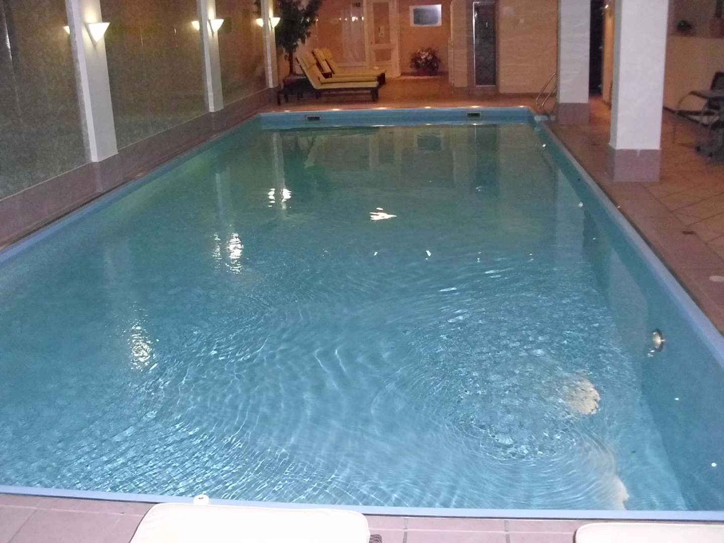 Das schön große und warme Hallenbad