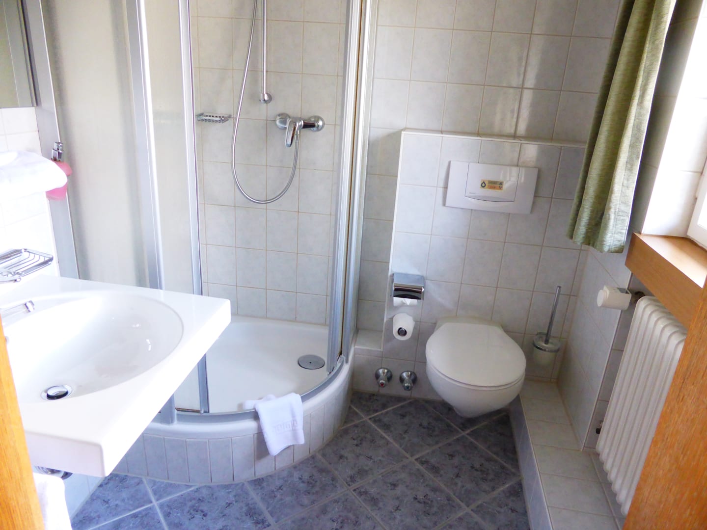 Duschbad. Sehr glatt in der Dusche. Anscheinend steht sie etwas schief.