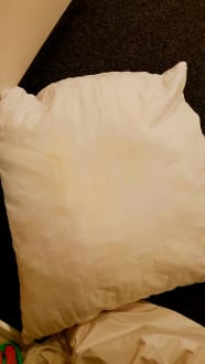 Kopfkissen mit riesigem gelben Fleck