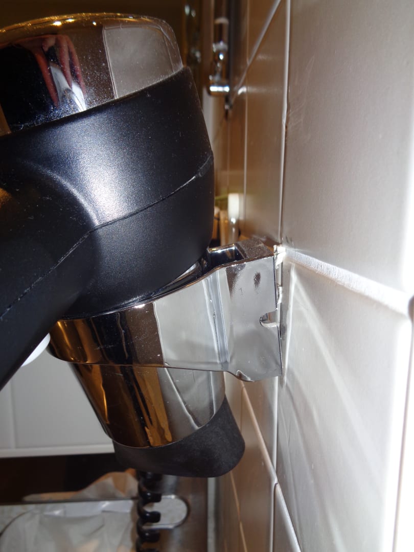 Fön am seidenen Faden an der Wand.