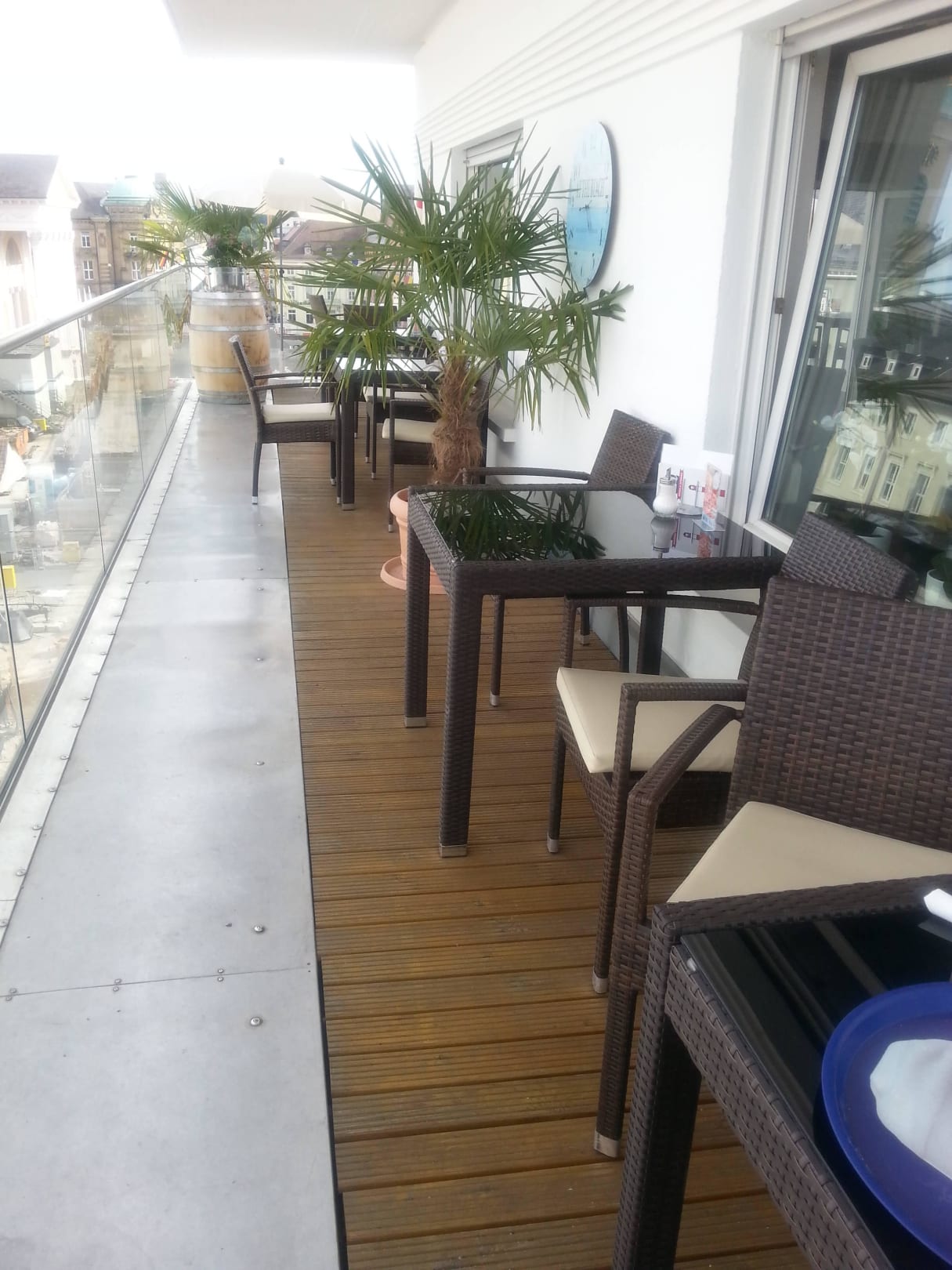 Dachterrasse mit klasse Blick über Karlsruhe. Hier kann auch das Frühstück eingenommen werden - das hat was