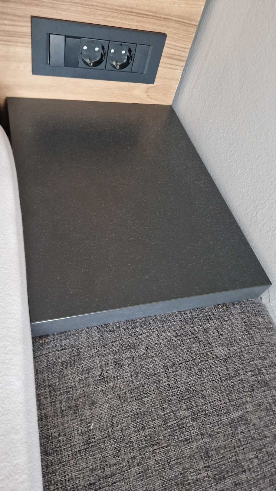Verstaubte Ablage direkt am Bett.