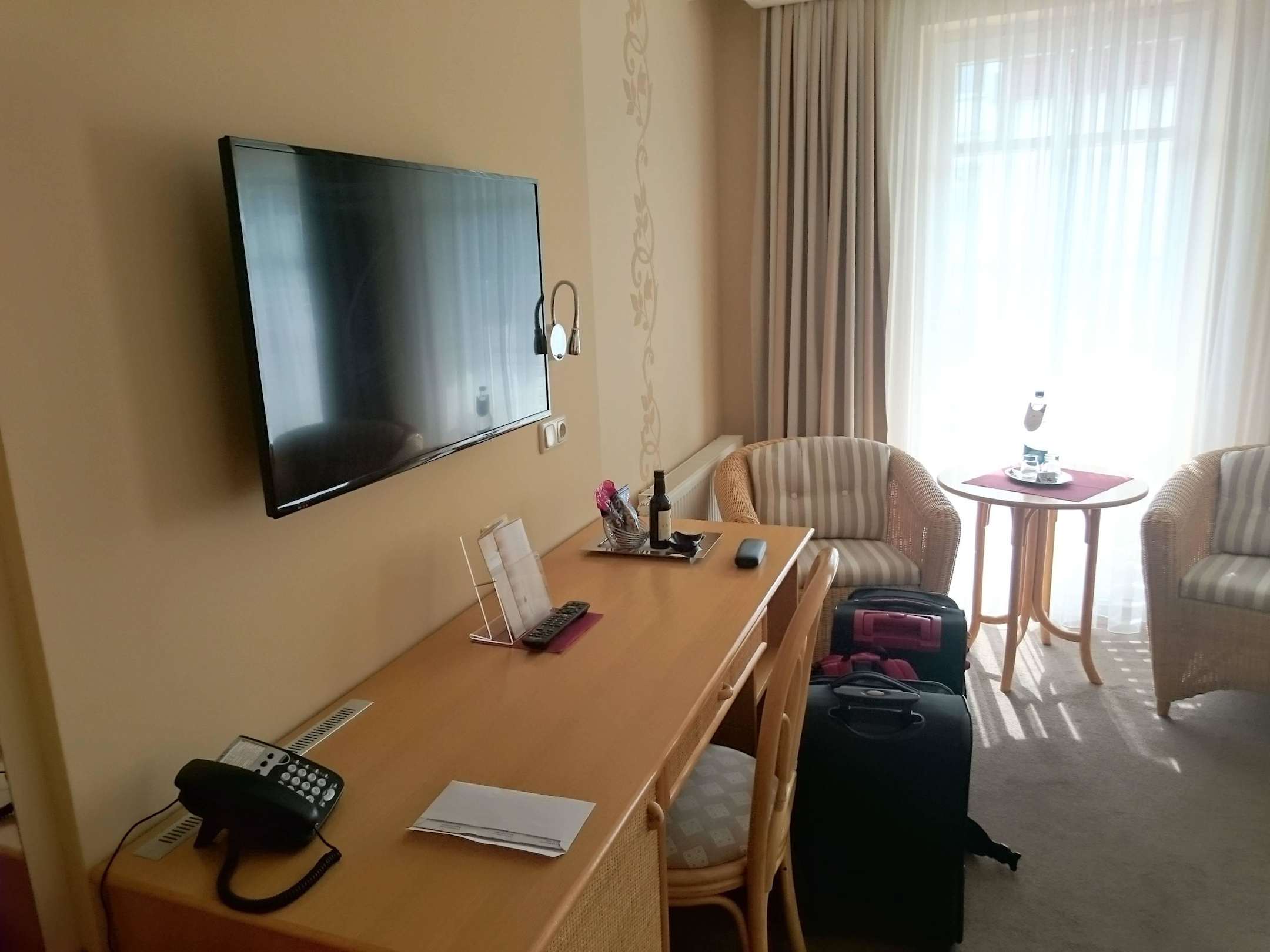 Schreibtisch und großer Flachbildfernseher
