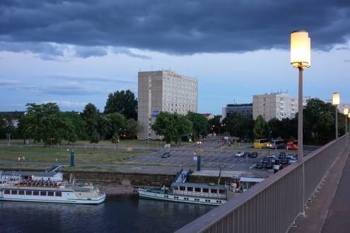 Blick von der Elbebrücke auf das Hotel