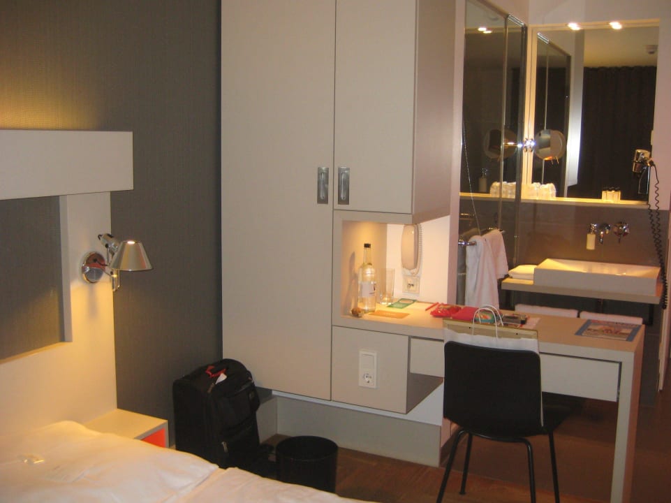 Dazwischen: Schrank und kleiner Schreibtisch - eine Art Raumteiler.