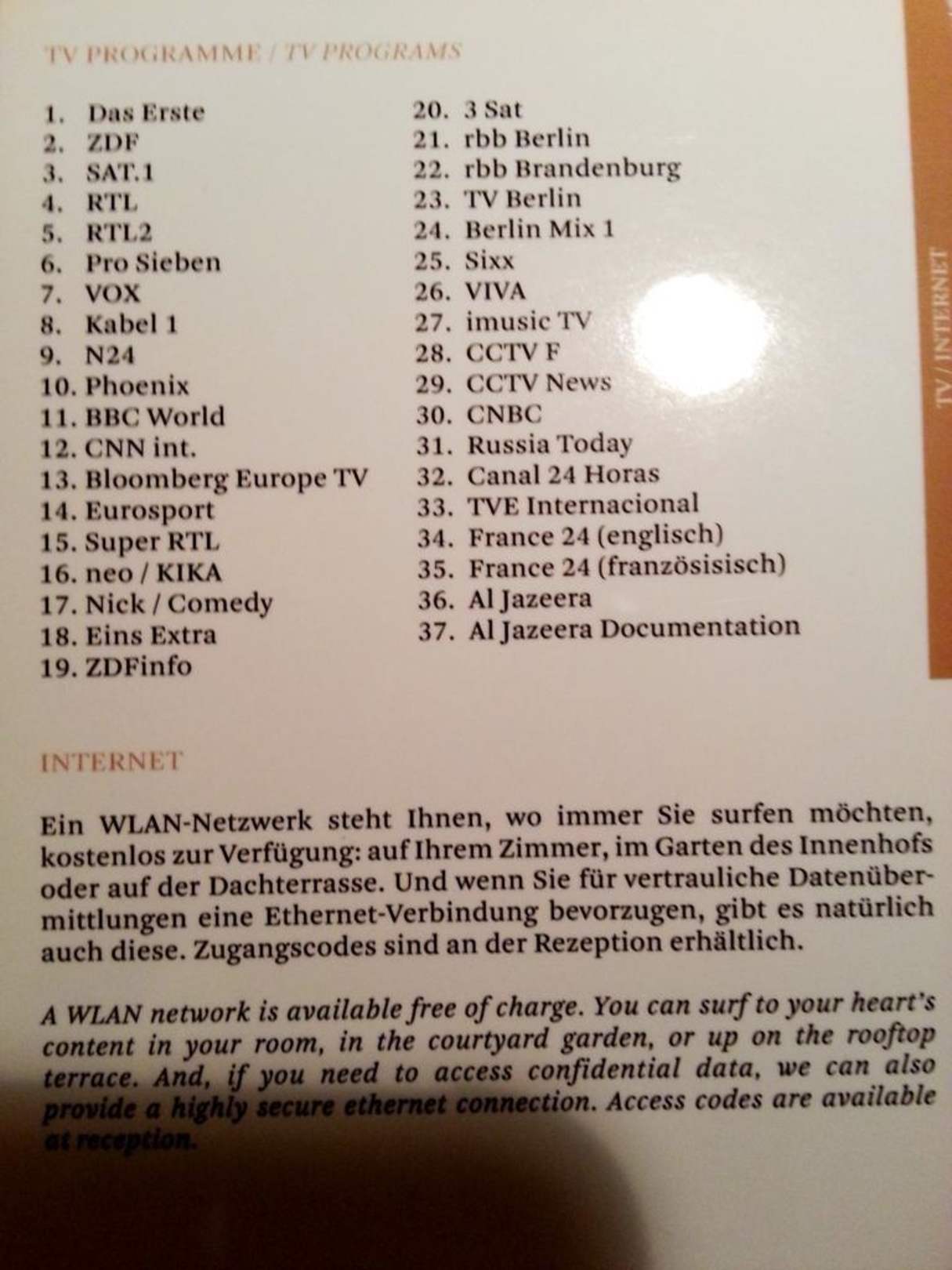 Informationsmaterial auf dem Zimmer