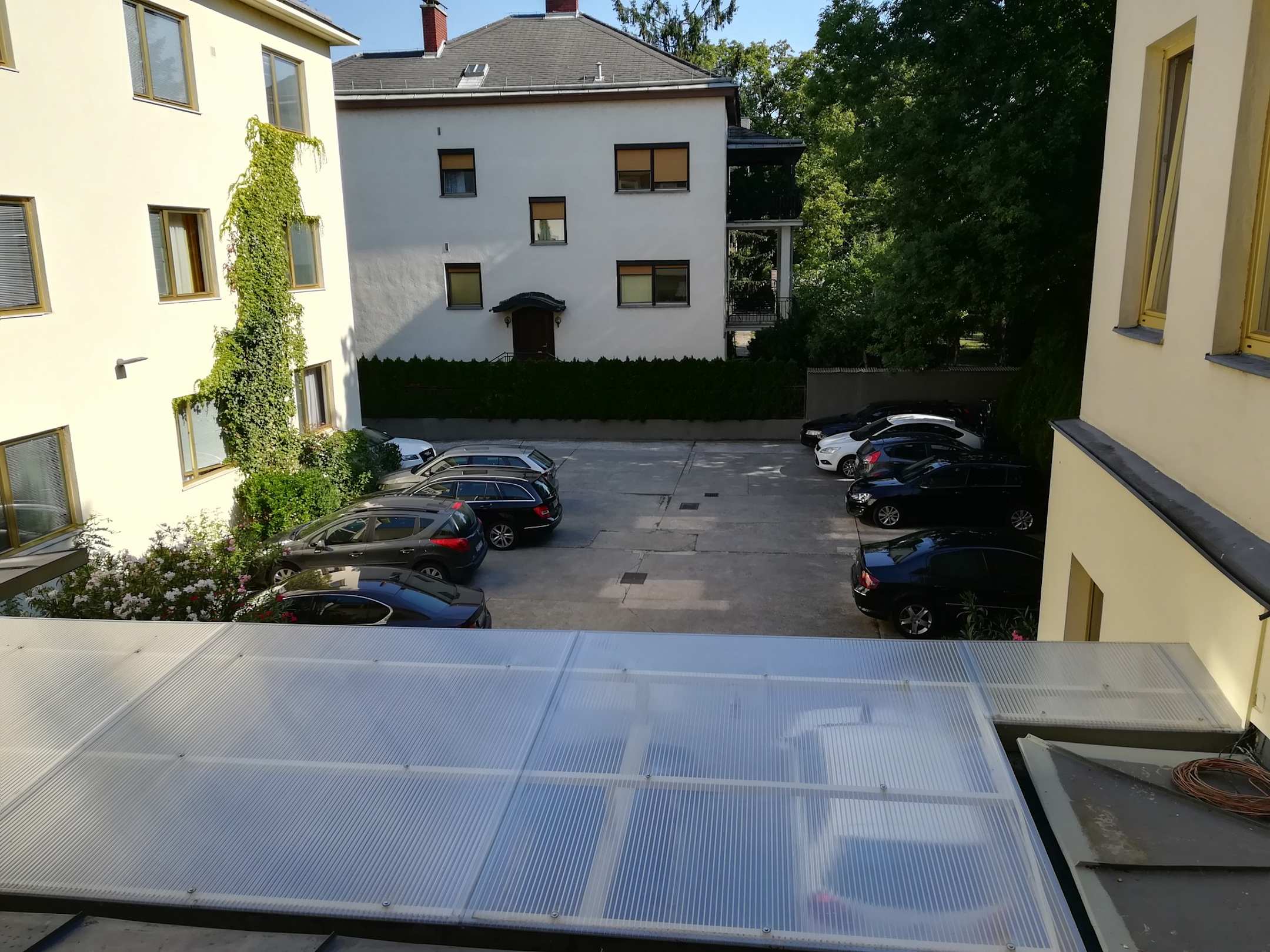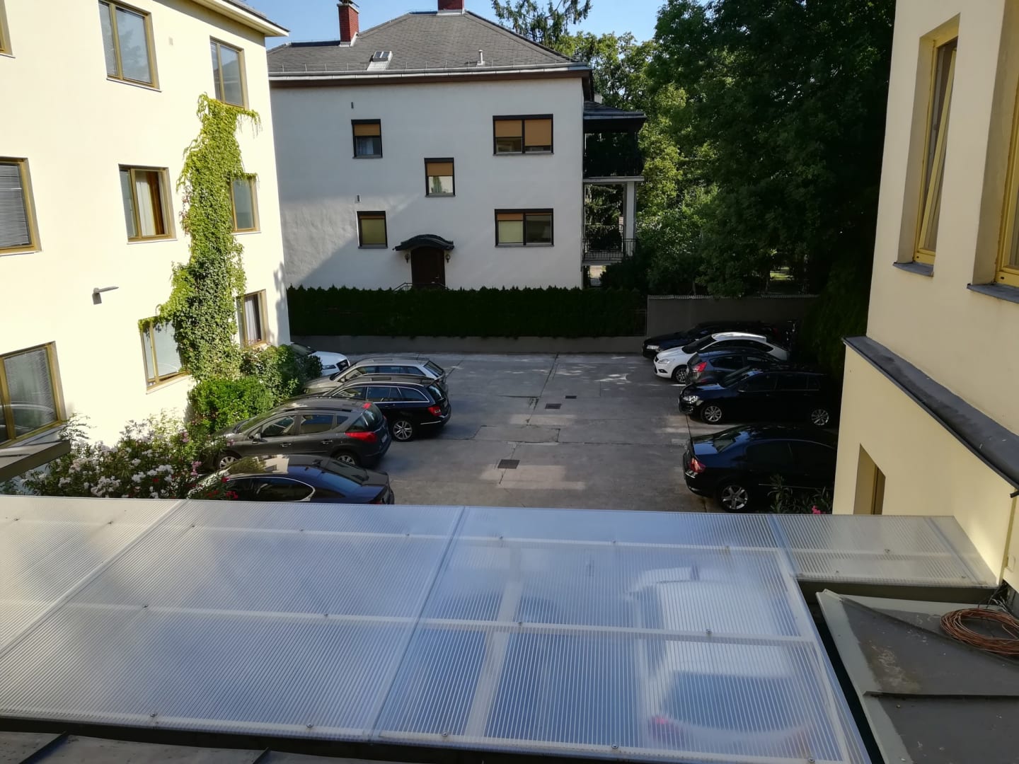 Parkplatz für 16 Fahrzeuge. Wer später kommt, muss draußen im irgendwo parken !