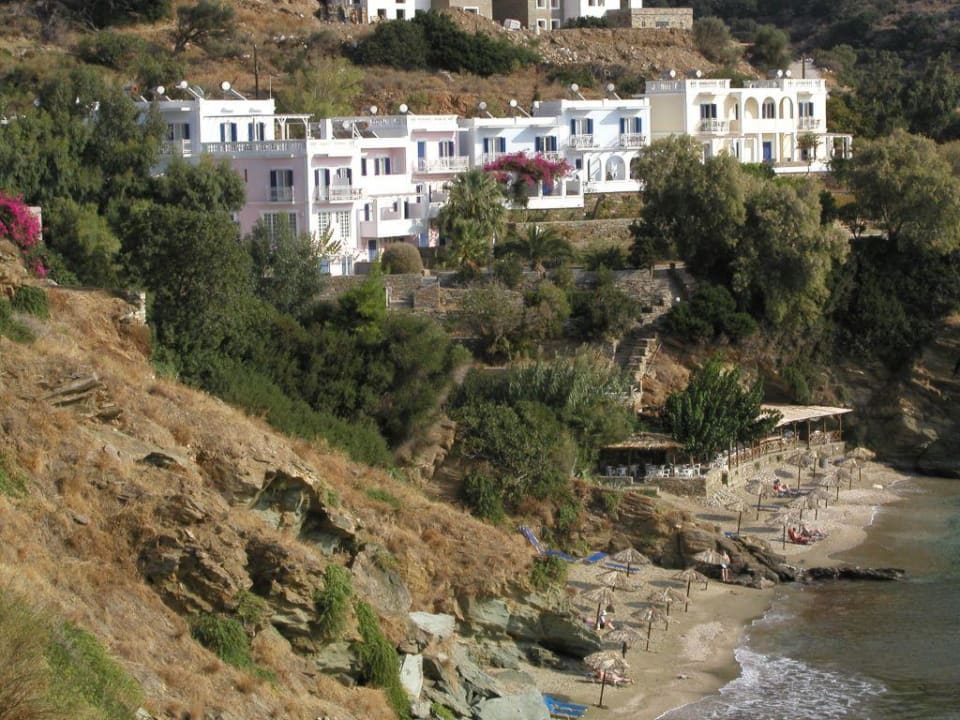 Hotel Aneroussa Beach mit dazugehörigen Strand.