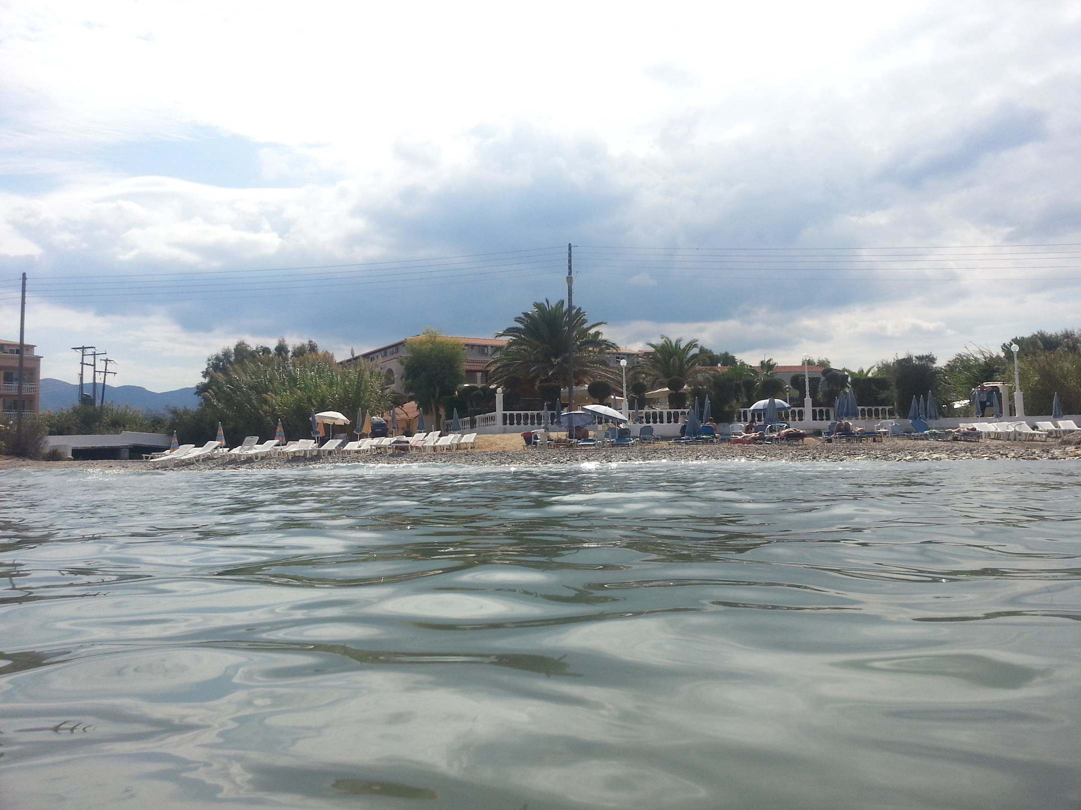 Blick vom Meer auf Hotel