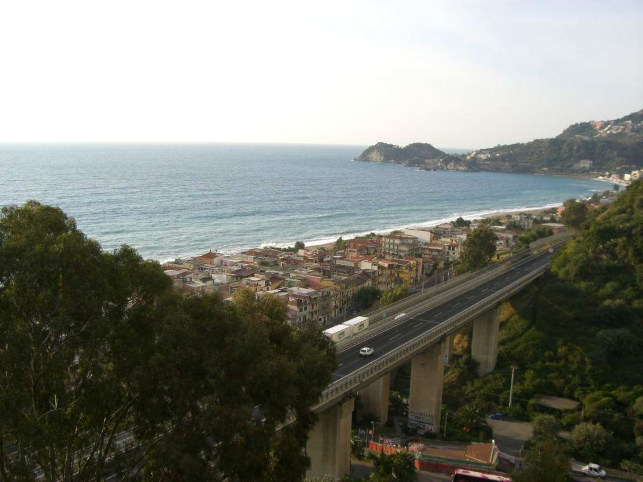 Blick von der Rezeptionsterrasse auf Autobahn, Letojanni, Richtung Taormina