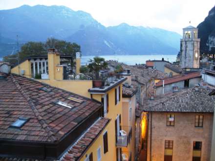 Der Ausblick von der Dachterrasse (Solarium) des Hotels in Richtung See.