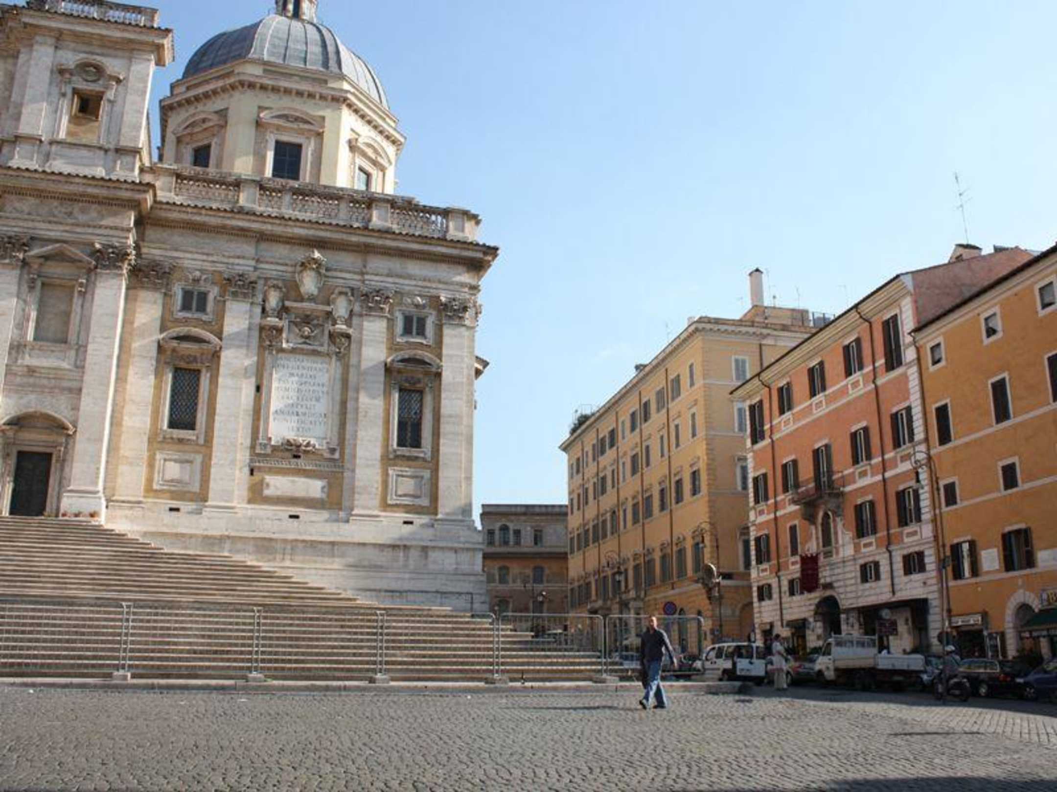 Das Rot/Orange Hotel liegt direkt an der "Santa Maria Maggiore" und nur 5 Gehminuten vom "Termini" (Bahnhof/Metro/Bus) entfernt. Tolle Lage für eine Städtereise!