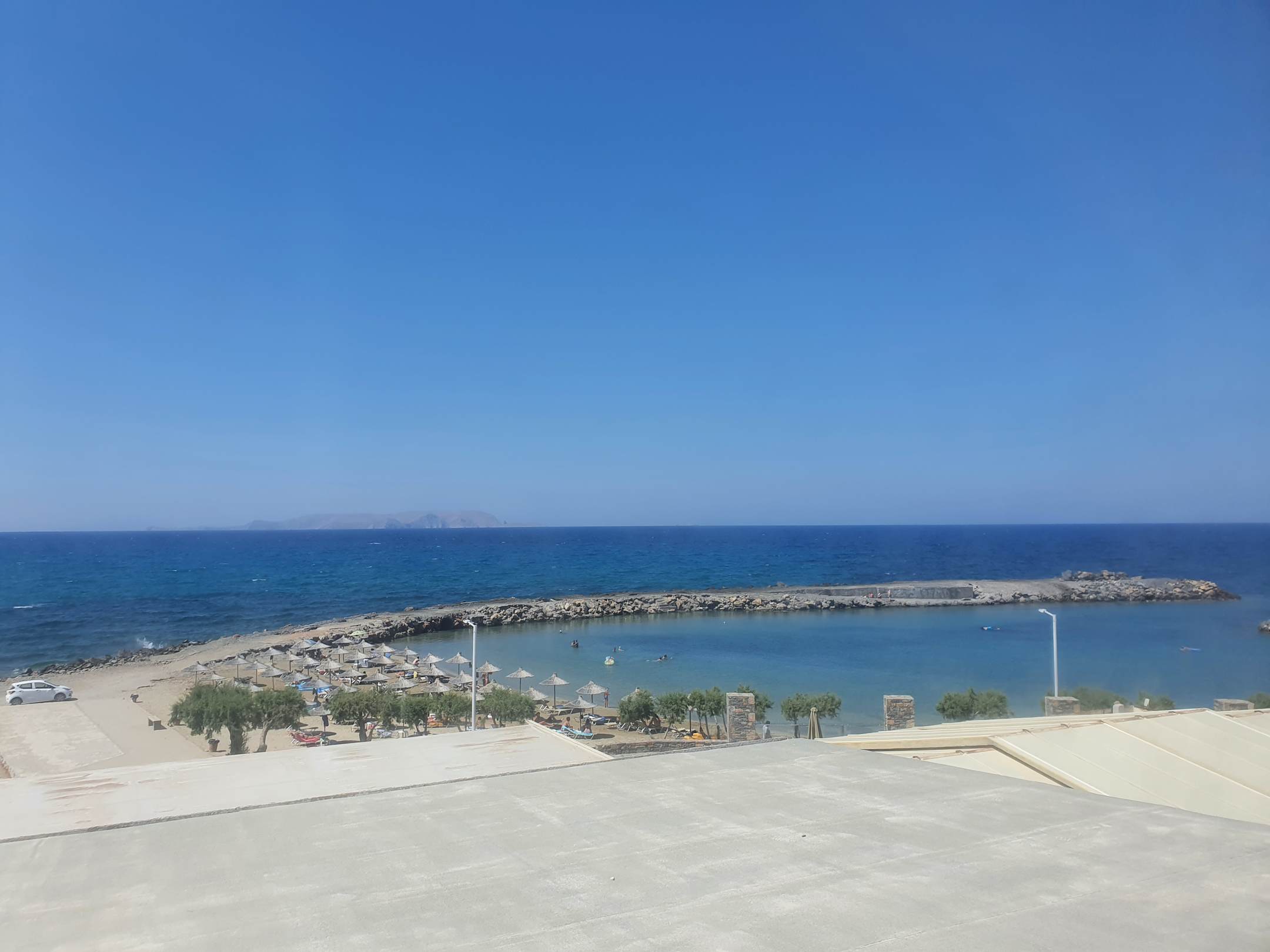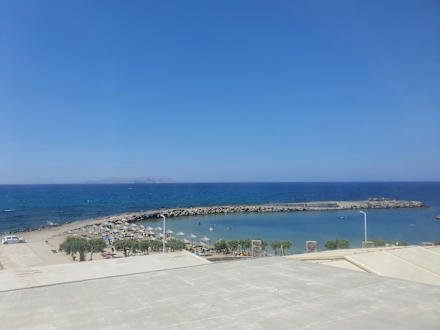 Links neben dem Steg, Strand mit ein wenig Wellegang und rechts daneben die Bucht die gegenüber dem Hotel liegt. Kein bis kaum Wellengang, optimal mit Kinder und Kleinkinder