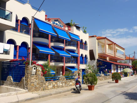 Vorderansicht des Hotels ApollonIm Hintergrund, direkt neben dem Hotel Apollon, befindet sich ein Supermarkt ...